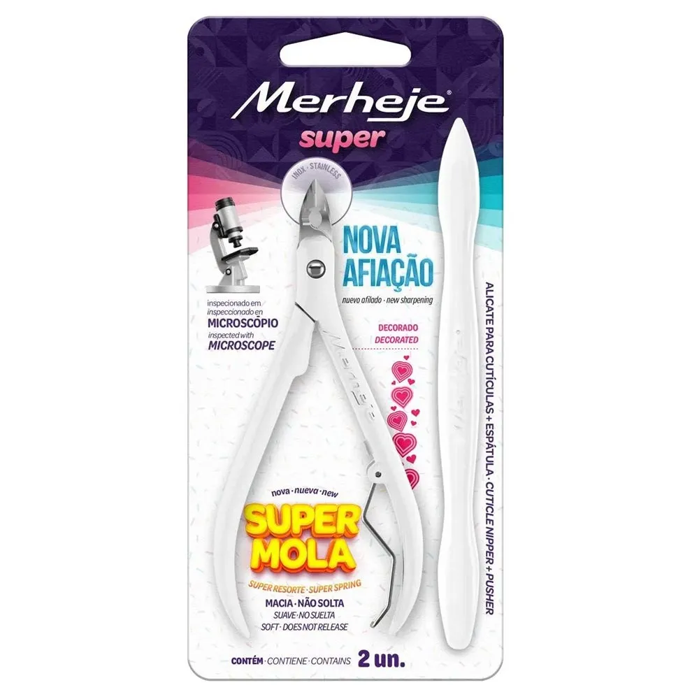 O Kit de Alicate para Cutículas e Espátula Merheje é indispensável para cuidados com as unhas, oferecendo precisão e praticidade. Este kit inclui um alicate de alta precisão, que facilita o corte das cutículas, proporcionando segurança e suavidade. A espátula permite empurrar as cutículas com delicadeza e precisão, ideal para um acabamento perfeito nas unhas.