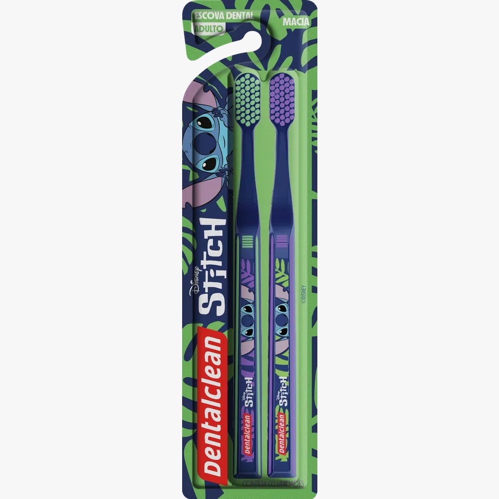 A Escova Dental Dentalclean Adulto Stitch possui cerdas macias e pontas arredondadas, além de cabo ergonômico para uma limpeza suave, que proporciona uma higienização eficaz sem agredir o esmalte dos dentes.