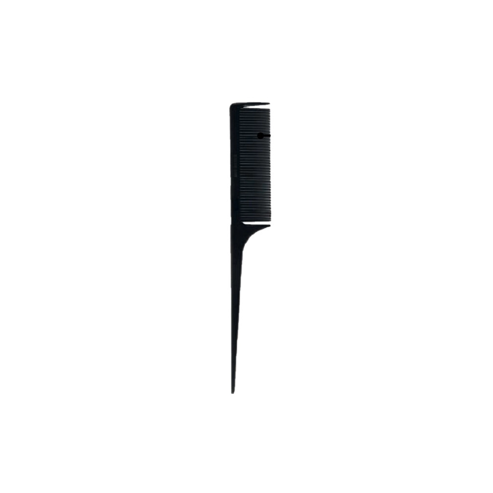 O pente ponta fina 181 Escobel é um modelo de pente com dentes finos e cabo alongado para uso profissional, principalmente para divisão de mechas em procedimentos como cortes e tinturas